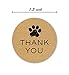 Design: Brown kraft label with vibrant black 'Thank You' and natural looking paw print. Permanent adhesive sticks well to most dry, flat surfaces.