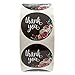 Design: Brown kraft label with black 'Thank you' in two stylish fonts. Permanent adhesive sticks well to most dry, flat surfaces.