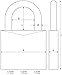 2 in. (51mm) wide lock body; 5 by 16 in. (8mm) diameter shackle with 2-1 by 4 in. (57mm) length, 1 in. (25mm) width