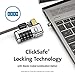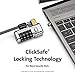 Kensington ClickSafe locking technology provides a locking anchor which attaches to the lock slot on the computer; the lockhead can then be attached to the locking anchor with one hand in a single click