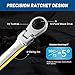 ▶ 【72-TOOTH & 12 POINT】: 72-tooth ratchet wrench has 5 degrees swing arc to work in narrow spaces easily. The 12-point box end delivers reliable torque to tighten or loosen any bolt without rounding. Speed up work.
