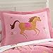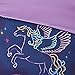 The ultra-soft comforter and a matching sham featuring colorful pegasus print with dark blue base fabric creates a stunning whimiscal look.