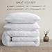 UNIQUE DESIGN & DURABLE - BEDHOURS comforter is made of a whole piece of poly-fill, which is more durable than most similar comforters on the market. Crafted with box stitching technology, our comforter sets secure the fillings in place, with zero concern of filling leakage or loose thread. There are 8 side and corner loops/tabs outside the comforter for you to secure your comforter cover in place, The beautiful solid bed comforter queen set also makes the bedding more simple and elegant.