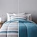 Includes a Twin/Twin XL set in Teal/Beige Stripes with (1) 66-by-90-inch reversible comforter and (1) 20-by-26-inch sham with an envelope closure