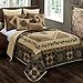 This antique ivory, black, chestnut brown, dusty teal and warm taupe southwestern motif pattern quilt fits king sized beds.