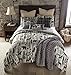 King quilt set includes 1 antique ivory, black, chestnut brown, dusty teal and warm taupe king quilt 110" x 96" and 2 king pillow shams 20"x 36".