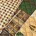 The brown, green, black, beige bordered geometric patchwork with pine cones quilt fits king size beds and is reversible to a solid color.