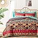 💎Colorful Bohemian Aztec Style Bedding Set - Beautiful burgundy and coffee boho geometric striped on front and back, reversible bedding set for daily use. Cool teal/aqua sheet set, elegant color design to refresh your room style. A perfect gift choice on festival and holidays.