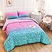 Elegant Glitter Design: The Galaxy Bedding Comforter Set Queen Use colorful glitter pattern glitter texture print in rose red and purple gradient color tones.With the latest 3D printing technology to create truly exquisite designs for our comforters. It is cute Pink and Blue Bed Set Kids for girls or women.