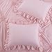 【3 Pcs Set Include】----- 1 pink color full comforter 81x86 inches with 4 inches ruffles, and 2 matching pillow shams 21x26 inches. Dreamlike pink color, matching with heart shaped pintuck and ruffles, give girls master/suite/bedroom a fresh look with this sweet comforters.