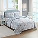 BEAUTIFULLY DESIGNED: Set of 3 includes 1 quilt and 2 matching standard pillow shams; Percale is breathable and offers the versatility to be used year-round; Crafted with comfort in mind, this set gets softer over time for a lived-in feel; The self-binding edges add durability to make this coverlet a standard staple for your bed; Shams feature a 4-inch overlap closure that keeps pillows tucked away; Layer your bed with sheets, a duvet, blankets, and pillows to ensure a relaxing night's sleep