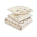 The Your Lifestyle microfiber quilt set features a striped Northwest pattern arranged in horizontal stripes. Bears and pine tree silhouettes alternate throughout. The reversible lining is an arrow pattern on ivory.