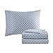 A botanical print, in soft blue hues, adorns the face and the reverse of comforter, creating two distinct and stylish looks. The matching reversible shams (1 in Twin Sizes) coordinate perfectly with the comforter, while an oblong decorative pillow adds the finishing touch.
