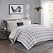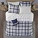 8 Piece comforter set features a navy plaid print on the face and a white on the reverse, for a charming casual look.