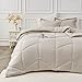 ⭐【High Quality Material】Made of 120GSM washed microfiber fabric with high tensile strength, and filled with the whole piece 350GSM down alternative polyester fiber, which is super soft, comfortable, lightweight, warm, skin friendly, durable, non-clumping, non-fading and non-shrinking after washing, and no need ironing with natural wrinkles. Experience a fabulous night's rest with our bedding comforters & sets for year-round comfort.