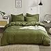 The queen size olive green comforter set 3 piece includes 1 duvet insert or stand-along comforter (90 x 90 inches) and 2 matching pillow shams (20 x 26 inches) Elegant Design - Stylish and modern, great for your bedding décor. You may also use this comforter set for guest room or as a gift for family members or friends to present your good taste. It is cute bedding set for men or women.