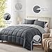 [Two-Tone and Lightweight] This Reversible oversized queen size comforter sets grey can be flipped between the dark grey and the light gray side based on your room requirements and mood making it ideal for home decoration. The bedding comforter set filled with WHOLE-PIECE MICROFIBER, so the gray lightweight comforter set oversized queen is light weight and warm perfect for all seasons: summer, spring, fall, winter