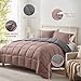 [Two-Tone and Lightweight] This Reversible california king size comforter sets brown can be flipped between the brown and the beige side based on your room requirements and mood making it ideal for home decoration. The bedding comforter set filled with WHOLE-PIECE MICROFIBER, so the brown beige lightweight comforter set cal-king is light weight and warm perfect for all seasons: summer, spring, fall, winter