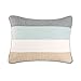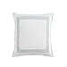 DESIGN: Highlighting a combination of printed textural stripes in shades of blue accented with bands of white and grey. Reversing to a solid deep blue textured ground. Square pillow is a solid white ground accented with navy embroideries. Breakfast pillow is designed using a crisp white ground with white embroideries for a tonal effect.