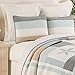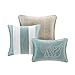 A soft seafoam blue is the accent color used in this beach themed comforter and shams playing up the seashell and sand dollar embroidery.
