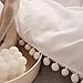 UNIQUE DESIGN: The white silver ball pom fringe sewn on the three sides of cream comforter set queen sized warm comforter bedding set and pillowcases can match any room style, giving it a kind of cute and bohemian feeling.