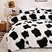 HIGH QUALITY MATERIAL – Fluffy dreamy cow pattern shaggy plush flannel velvet comforter cover set which is made of 100-percent brushed microfiber. A side is plush faux fur fiber, B side is flannel velvet. Both furry shaggy microfiber will help you stay warm and toasty at chilly nights, also wrinkle, shedding, fade and pilling resistant.