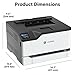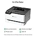 Compact color laser printer that has dimensions that can easily fit in most places with a tray capacity up to 250 pages, plus single-sheet feeder