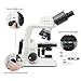 Binocular head accepts additional eyepiece and microscope camera attachments in order to view, livestream, record, and capture magnified specimen images. A powerful multi-purpose compound microscope for viewing tiny details of specimen slides; excellent for clinicians, high school and university science students, and enthusiastic hobbyists alike