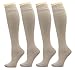 Graduated Compression for Pain Relief: beige socks have 20 to 30mmhg gradient compression for circulation, from toes to thigh, good for relieving pain of leg, muscle soreness and ache and subsidence of a swelling