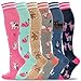 STYLISH COMFORT DESIGN We have prepared compression stockings for women with different cute animal prints for you. Brightly colored compression socks are with a unique pattern and reinforced toe and heel sections for added support and comfort. Just pick your favorite from these fun compression socks to show your personality and style