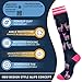 Fun and cute compression socks that are not only comfortable but also breathable without compromising your mobility. They are machine washable and recommended to dry, not iron.