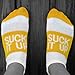 SUCK IT UP BUTTERCUP! Motivate and push yourself to do better, be better and overcome with these inspirational socks, providing wisdom not only for your feet, but for the body and soul. Make both a fashion statement and a statement about what motivates you!