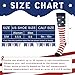 American Flag Socks US Sizing Guide: Women 5.5-9 | Men 5-8 | Calf 9in - 15in. Red white and blue compression socks cover your feet and calves. Knee high compression socks or over the knee compression socks. The patriotic compression socks for women circulation stimulate blood flow and improve oxygen delivery to your muscles. 4th of July compression socks keep your feet and calves relaxed all day. Package includes 1 pair of red white and blue knee high socks.