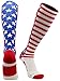 PERFECT AMERICAN FLAG SOCKS: Show your USA Pride in these over the calf American Flag socks featuring stars and stripes inspired by the American flag. American Flag socks Ideal for softball, baseball, lacrosse, basketball, field hockey, volleyball, wrestling, hockey, soccer, football, cheer, kickball and more!