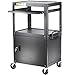 AV UTILITY CART WITH CABINET: Our AV carts with wheels comes with a lockable storage cabinet, so you can secure your items while moving this mobile desk workstation from room to room. The 4 swivel casters with 2 locking brakes guarantee smooth transportation!
