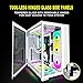 【Tempered Glass Panel】The panel consists of tempered glass and five-gold steel, making the RGB components visible at a glance. The motherboard is compatible with EATX, ATX, Micro-ATX, and Mini-ITX.
