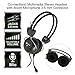 ALL-DAY COMFORT: Light weight design double ear phone headset for cell phone with adjusatble headband fits for different head sizes. Soft leatherette ear cushion with 180° rotatable earpieces can sit properly on ears, no pain no pressure for all-day long wearing. 330°rotatable microphone boom allows this wired computer headset with 3.5mm jack to be used on left or right side.