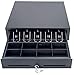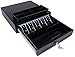 The Cash Drawer features a printer driven interface with bottom exit cable (cable included) and dual media slots provide extra storage for checks and large bills