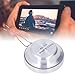 Brushed silver metal finish with blue LED accent lights for sleek, modern style; padded base for scratch-free placement and stability