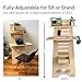 Ergonomic and eye-catching! Perfect for your home office this unique A-frame wooden stand up desk design will make a stylish statement in your work area. The design incorporates two computer table top desks (29.5" wide & 27.5" wide), cell phone and headset holders, an easily movable storage box and comfortable foot rests.