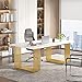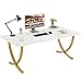 SUPERIOR MATERIAL: This white and gold executive desk adopts the faux marble particle board as the tabletop, which is easy to clean, waterproof, anti-abrasion, and heat-resistant. The scratch-resistant laminate finish protects the desk's surface from daily wear and tear while the waterproof function eliminates your concern about spilling water or drinks.