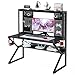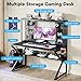 ALL IN ONE ORGANIZATION: Featured with versatile storage function design, this gaming desk with shelves provides plenty of storage space for your workstation: one basket for pens or small tools, two gaming speaker device stands, two double-hook racks for game controllers, one four-hook rack for other items hanging. Shelf under the desktop and top shelf also offers storage or display space. Keep everything well organized and easily accessible!