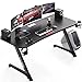 【FEATURES BUILT FOR GAMERS】The cup holder and headphone hook put your drink and headset right at your fingertips. The cup holder is specially designed for gamers so you can easily enjoy your drink or coffee after the game. Headphone hooks and two cord management holes provide a clean and comfortable gaming or working environment. These are well designed to keep your items within your reach, but also work well to keep your desk neat and tidy.Desktop with Large Mouse Pad: 55.1x23.6 inch carbon fiber desktop, the large PVC laminated surface and mouse pad provides massive space for your gaming monitors, PC, gaming keyboards and other gaming gear