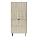 Thick paneled contemporary Styling with a modern brown wood grain look accented with stylish black plastic handles