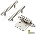 [Kit Includes]: Ravinte 30 Pack 5" Brushed Nickel Kitchen Cabinet Pulls; 50 Pack 25 Pairs 1/2 inch Overlay Satin Nickel Cabinet Door Hinges, 50 Door Bumpers, 1 Screwdriver