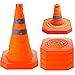 ✨EASILY STORED: This set of collapsible traffic cones can be easily folded down to a height of 1.7 inches, making storage very easy. When your function, road situation, driving lesson, parking lots, or sports training exercise is complete, simply stack them up and there is a storage bag inside, which is convenient for you to carry the collapsible traffic cone.