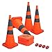 ✨28 INCH SAFETY CONES: These road cones can collapse up to 28 inches tall, making them a suitable barrier for a number of settings. They can be used outdoors as a traffic barrier, or indoors for a sport training activity. Plus, being tall, fluorescent, and reflective means people are unlikely to miss them.