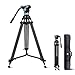 Aluminum Construction: High quality aluminum alloy video tripod, lightweight and sturdy. Center column with hook for hanging goods to increase stability. Max. loading Capacity: 12KG/26.5lbs. Tripod weighs only 3.5lbs/1.59kg (Without video head.