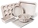 Set includes 13.75x10-inch cookie sheet, 9x9-inch square pan, 10x5-inch loaf pan, 9-inch round cake pan, and 13.75x10-inch muffin pan of 12 cups.