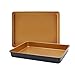 HEALTHY NONSTICK COATING: Our oven pans are made with aluminum carbon steel for even distribution of heat and long term use. BPA free Non toxic coating makes food slide right off the cookie sheets. The perfect kitchen essentials set. This makes it your first choice and best bet for a safe and quality baking set